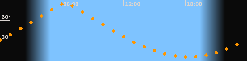 | Höchster Stand (Kulmination) | 06:17 Uhr (h = 84,9°) |