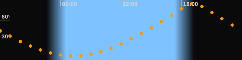 | Höchster Stand (Kulmination) | 19:13 Uhr (h = 84,9°) |