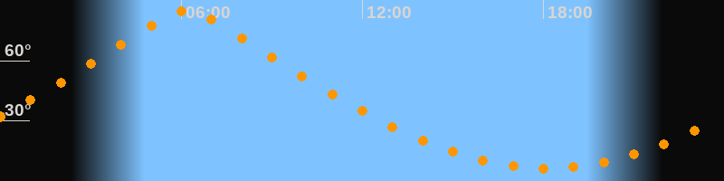| Höchster Stand (Kulmination) | 06:10 Uhr (h = 84,9°) |