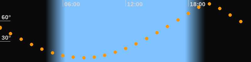 | Höchster Stand (Kulmination) | 19:53 Uhr (h = 84,9°) |