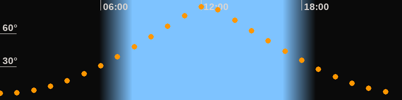 | Höchster Stand (Kulmination) | 12:17 Uhr (h = 84,9°) |