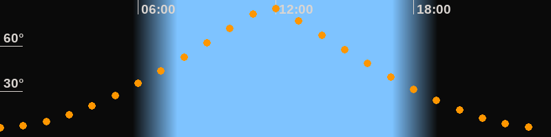 | Höchster Stand (Kulmination) | 11:45 Uhr (h = 84,9°) |