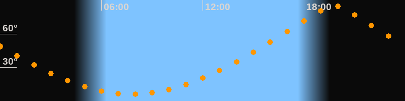 | Höchster Stand (Kulmination) | 19:46 Uhr (h = 84,9°) |