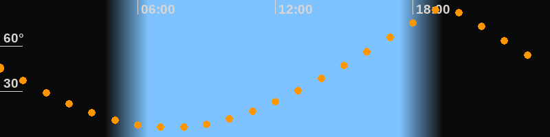 | Höchster Stand (Kulmination) | 19:22 Uhr (h = 84,9°) |