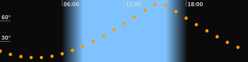 | Höchster Stand (Kulmination) | 15:24 Uhr (h = 84,9°) |