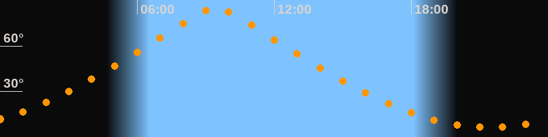| Höchster Stand (Kulmination) | 09:26 Uhr (h = 84,9°) |