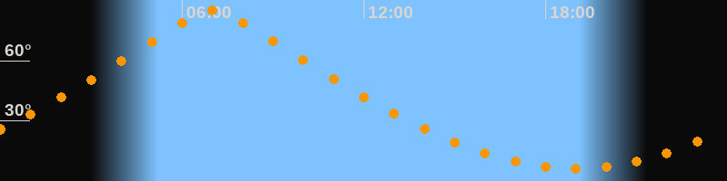 Höchster Stand (Kulmination)07:00 Uhr (h = 84,9°)