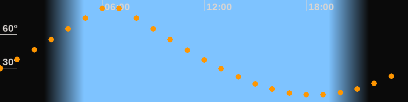 Höchster Stand (Kulmination)06:29 Uhr (h = 84,9°)