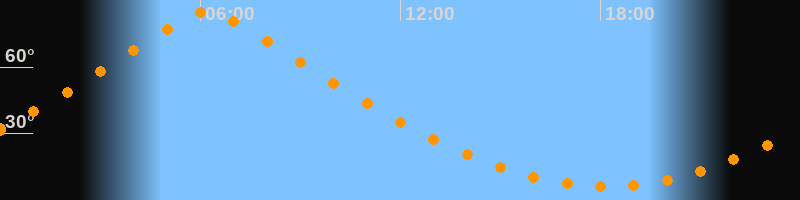 | Höchster Stand (Kulmination) | 06:13 Uhr (h = 84,9°) |