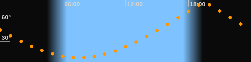 | Höchster Stand (Kulmination) | 19:31 Uhr (h = 84,9°) |