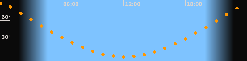 | Höchster Stand (Kulmination) | 00:03 Uhr (h = 84,9°) |