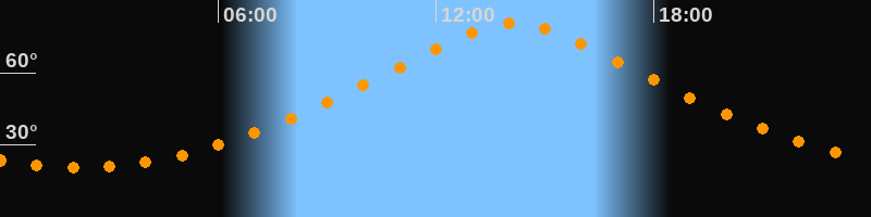 | Höchster Stand (Kulmination) | 14:08 Uhr (h = 80,8°) |