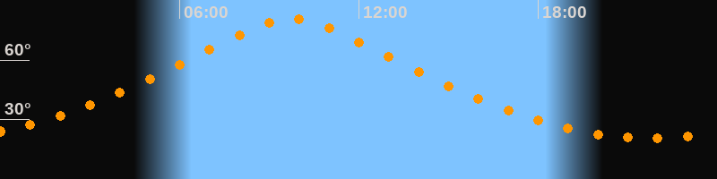 | Höchster Stand (Kulmination) | 09:45 Uhr (h = 80,8°) |