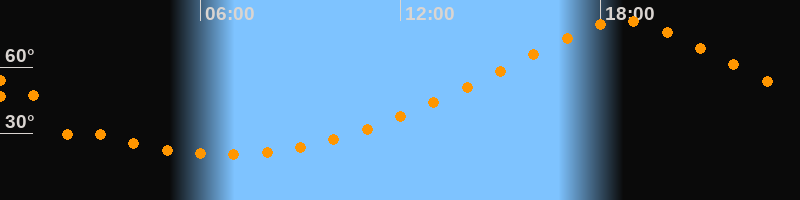 Höchster Stand (Kulmination)18:41 Uhr (h = 80,8°)