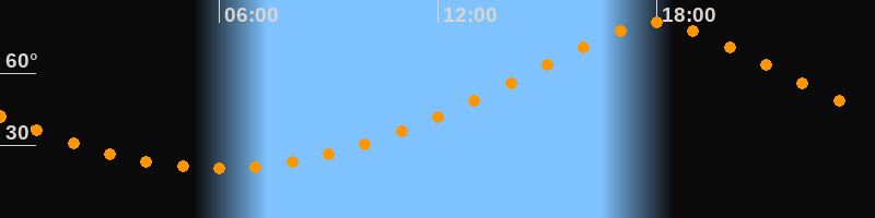 | Höchster Stand (Kulmination) | 18:00 Uhr (h = 80,8°) |