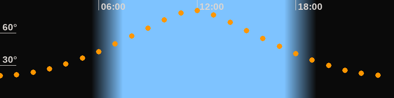 | Höchster Stand (Kulmination) | 11:50 Uhr (h = 80,8°) |