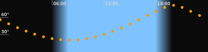 Höchster Stand (Kulmination)20:00 Uhr (h = 80,8°)