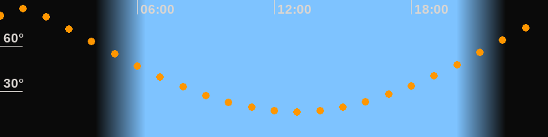 | Höchster Stand (Kulmination) | 00:54 Uhr (h = 84,6°) |