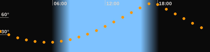 | Höchster Stand (Kulmination) | 17:21 Uhr (h = 84,6°) |