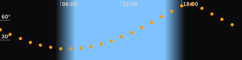 | Höchster Stand (Kulmination) | 18:45 Uhr (h = 84,6°) |
