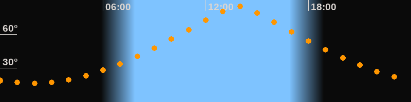 | Höchster Stand (Kulmination) | 13:54 Uhr (h = 84,6°) |