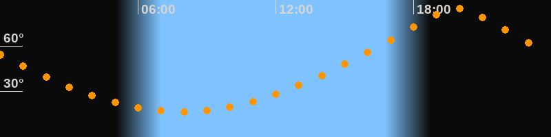 | Höchster Stand (Kulmination) | 19:53 Uhr (h = 84,6°) |