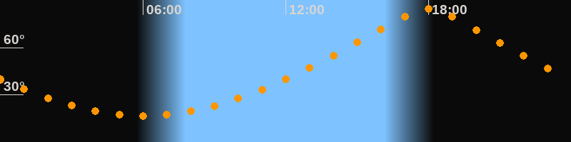 | Höchster Stand (Kulmination) | 17:58 Uhr (h = 84,6°) |