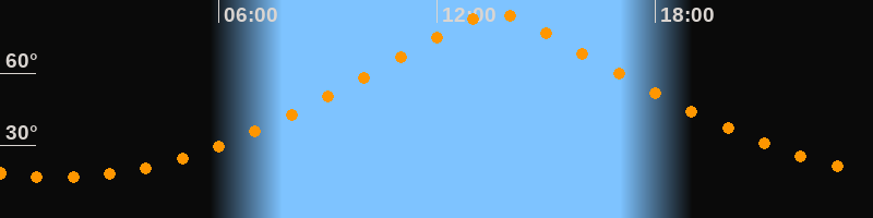 | Höchster Stand (Kulmination) | 13:35 Uhr (h = 84,6°) |