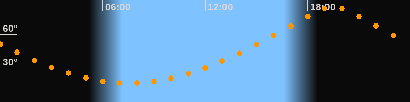 | Höchster Stand (Kulmination) | 19:30 Uhr (h = 84,6°) |