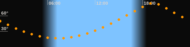 | Höchster Stand (Kulmination) | 19:18 Uhr (h = 84,6°) |