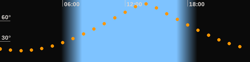 | Höchster Stand (Kulmination) | 13:52 Uhr (h = 84,6°) |
