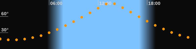 | Höchster Stand (Kulmination) | 13:33 Uhr (h = 84,6°) |