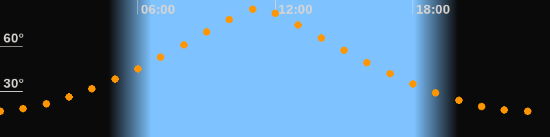 | Höchster Stand (Kulmination) | 11:15 Uhr (h = 84,6°) |