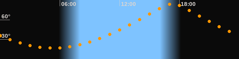 | Höchster Stand (Kulmination) | 17:19 Uhr (h = 84,6°) |
