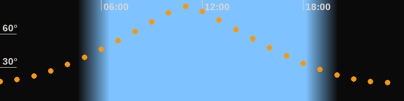| Höchster Stand (Kulmination) | 11:05 Uhr (h = 84,6°) |