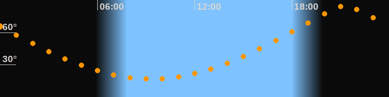 | Höchster Stand (Kulmination) | 21:17 Uhr (h = 84,6°) |