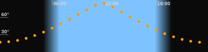 | Höchster Stand (Kulmination) | 11:45 Uhr (h = 84,6°) |