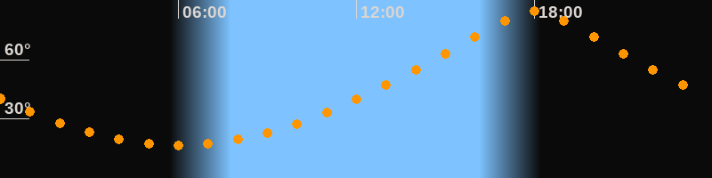 | Höchster Stand (Kulmination) | 18:00 Uhr (h = 84,6°) |