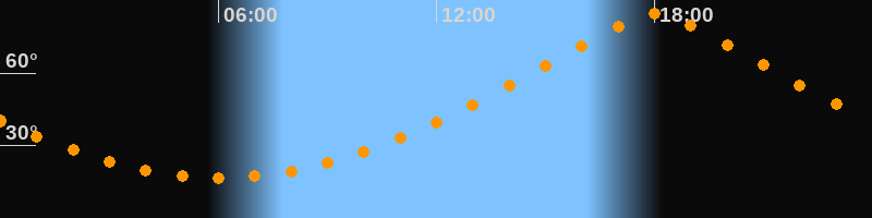 | Höchster Stand (Kulmination) | 18:01 Uhr (h = 84,6°) |