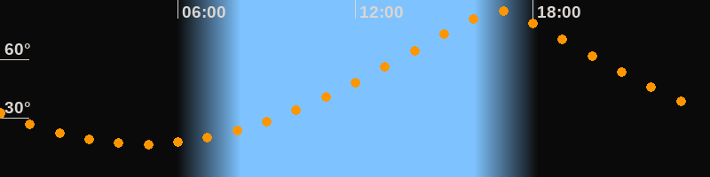 | Höchster Stand (Kulmination) | 16:50 Uhr (h = 84,6°) |