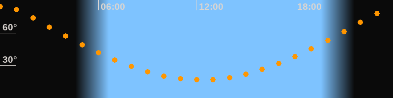 | Höchster Stand (Kulmination) | 00:12 Uhr (h = 84,6°) |