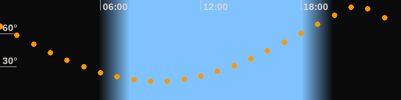 | Höchster Stand (Kulmination) | 21:21 Uhr (h = 84,6°) |