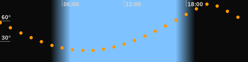 | Höchster Stand (Kulmination) | 20:16 Uhr (h = 84,6°) |