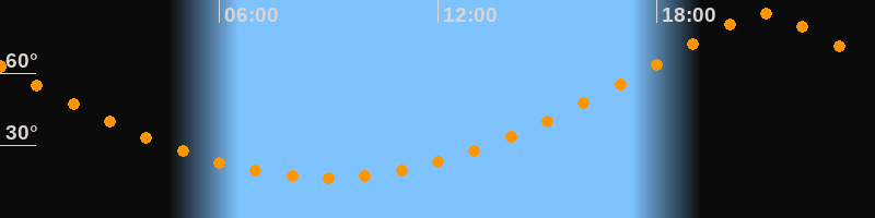 Höchster Stand (Kulmination)20:56 Uhr (h = 84,6°)