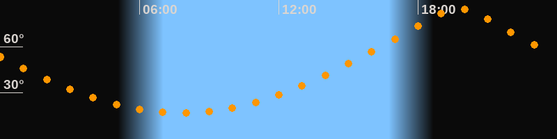 | Höchster Stand (Kulmination) | 19:46 Uhr (h = 84,6°) |