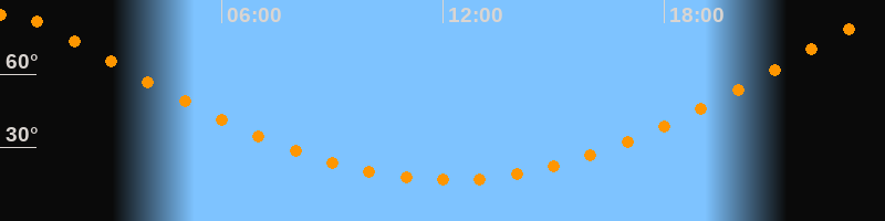 | Höchster Stand (Kulmination) | 00:10 Uhr (h = 84,6°) |