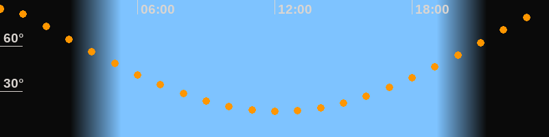 | Höchster Stand (Kulmination) | 00:06 Uhr (h = 84,6°) |