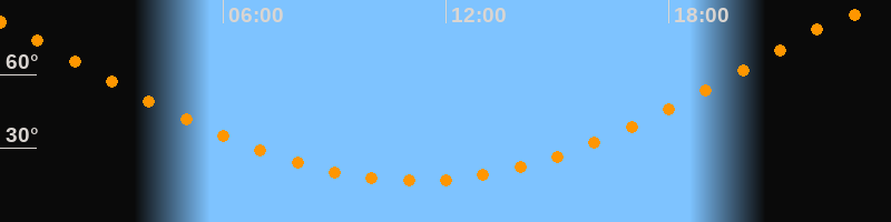 Höchster Stand (Kulmination)23:11 Uhr (h = 84,6°)