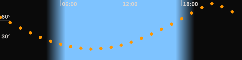 Höchster Stand (Kulmination)21:05 Uhr (h = 84,6°)
