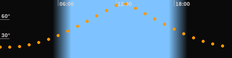 | Höchster Stand (Kulmination) | 12:42 Uhr (h = 84,6°) |